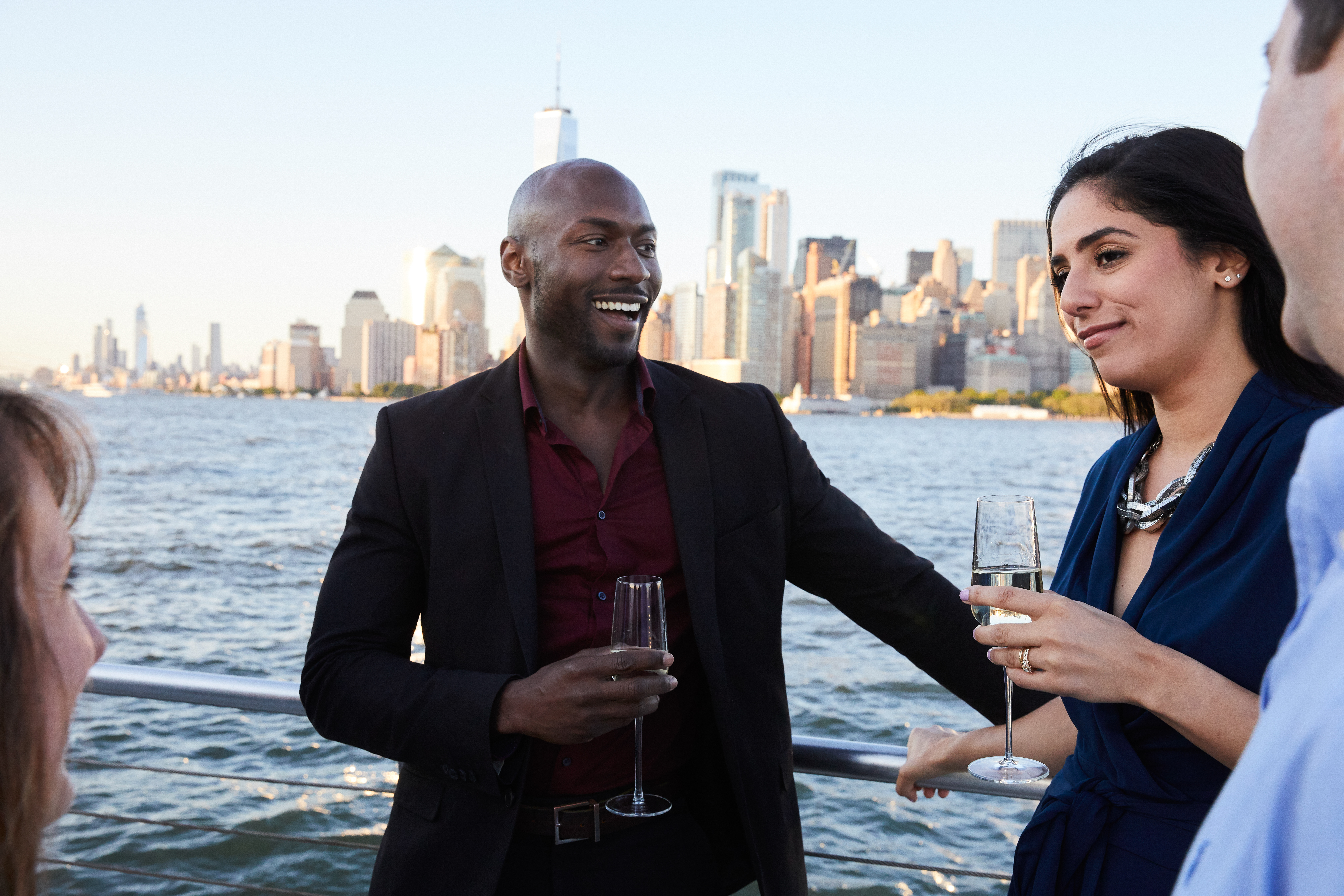 Enjoy a plated dinner service in a refined atmosphere—this is a true “night out,” elevated by the NYC skyline.