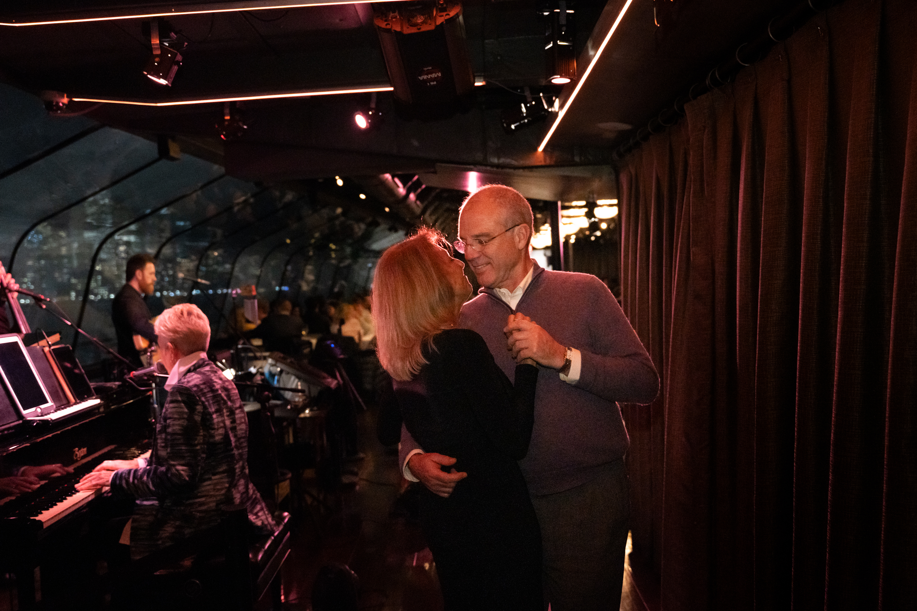 The tone is refined and celebratory—enjoy the ambiance, music/entertainment (as offered), and the slow glide of the harbor.